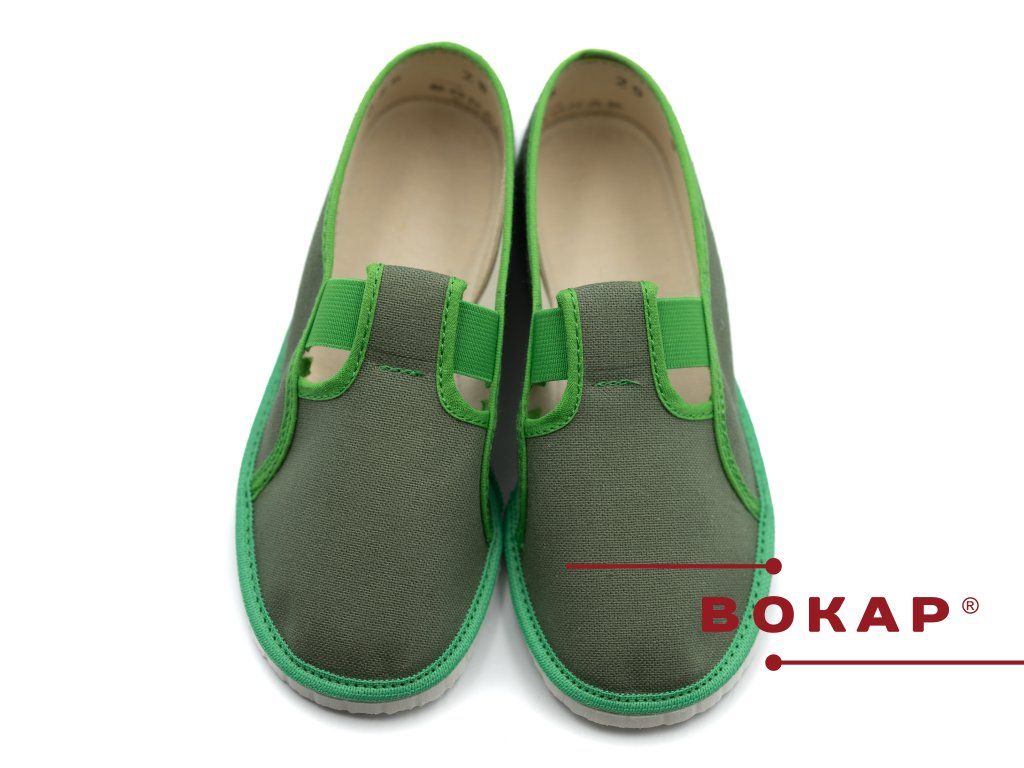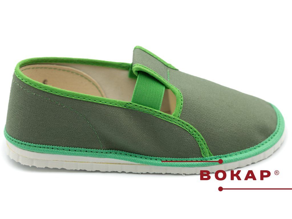 Dětská domácí obuv BOKAP 025 se stala velmi oblíbenou a klasickou značkou firmy BOKAP. Nejnovější model využívá ekologické materiály. Svršek je vytvořen ze 100% bavlny. Podešev vyrobena z materiálu lehčený duroten.